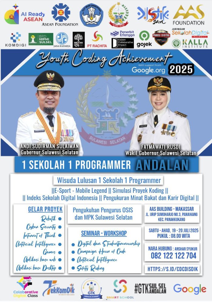 Makassar, IMN.co.id – Dinas Pendidikan Provinsi Sulawesi Selatan akan menggelar ajang spektakuler bertajuk Youth Coding Achievement 2025 pada 19-20 Juli